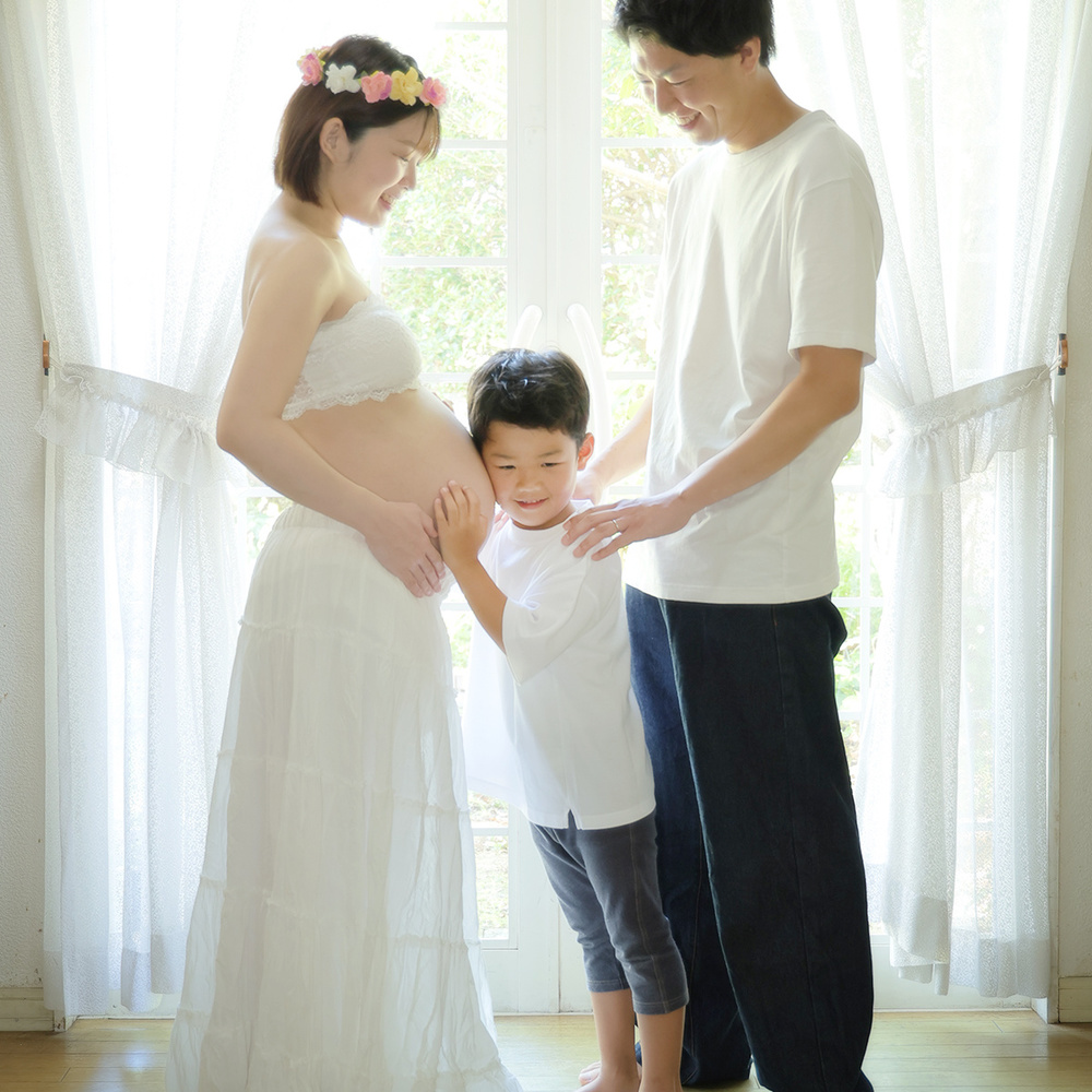 おなかの中にいる赤ちゃんと過ごす特別な数ヶ月、そのときだけの特別な家族写真を写してくださいね。写しておきたいエコー写真やグッズもあれば持ってきてね。