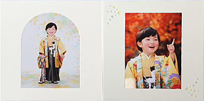 例えば赤ちゃんお一人写りと家族写真のように写る人が変わる場合や、写る人が同じでも着物とドレスのように衣装が変わる場合は料金が追加になります。このような時は小さい写真が2枚おまけにつきます。