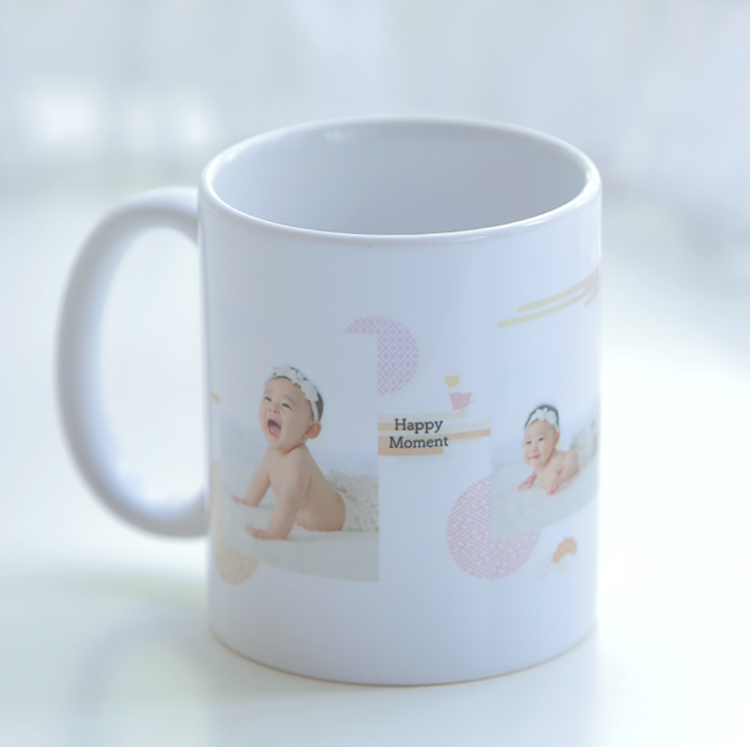 普通サイズのマグカップに選んだ写真3枚までプリントすることができます。使っても良し、飾っても良し、プレゼントにも良しです