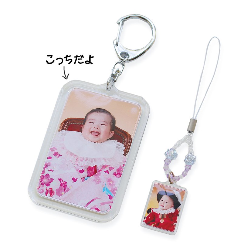 可愛い写真がいつも持ち歩けるキーホルダーやストラップ、いろいろな種類があります。