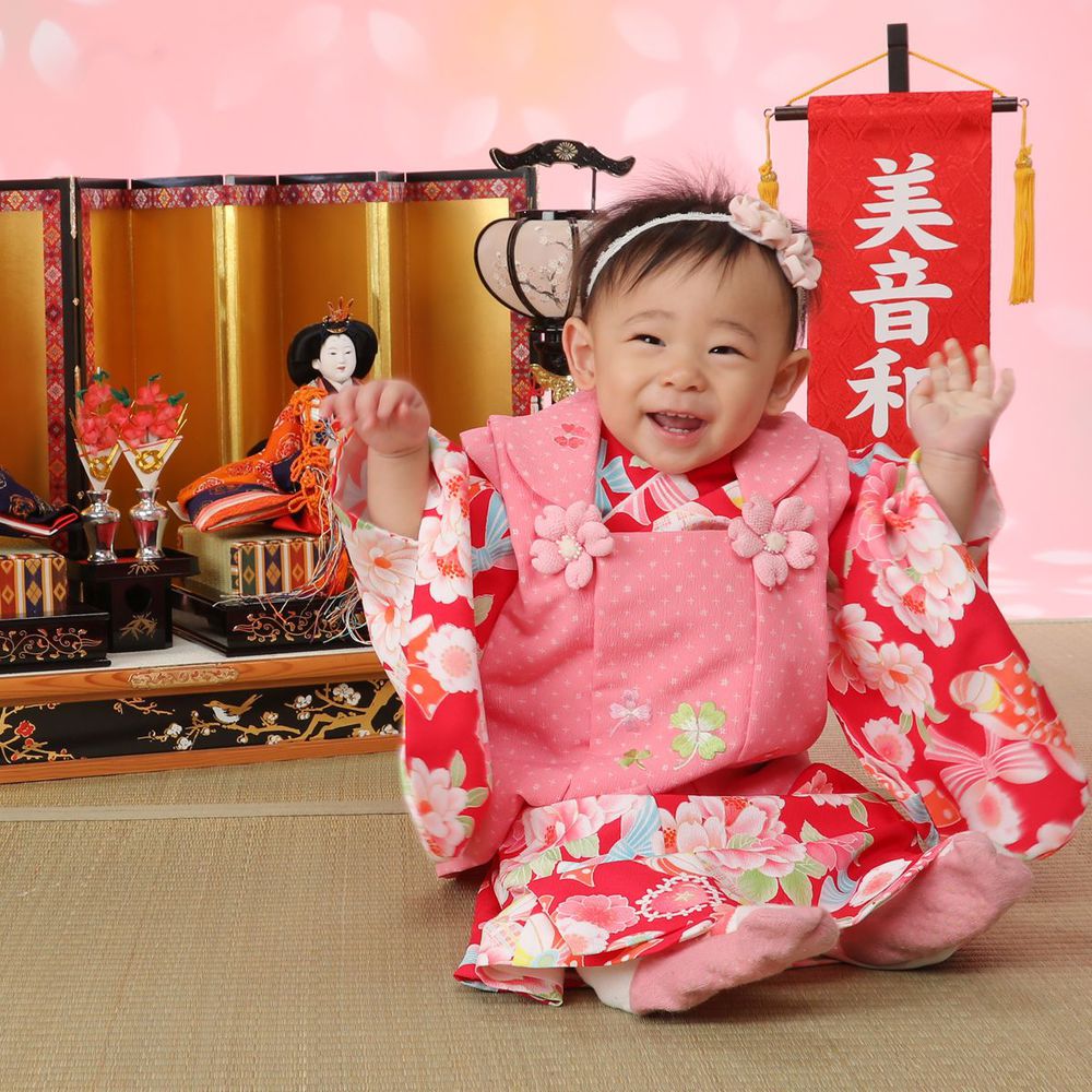 生まれてはじめての3月3日のひな祭りは特に「初節句」としてお祝いをします。その初めてのひな祭りの記念を写してあげてください。自分のおひなさんを持ってきてもらったら一緒に写したりできるのでよかったら持ってきてね。