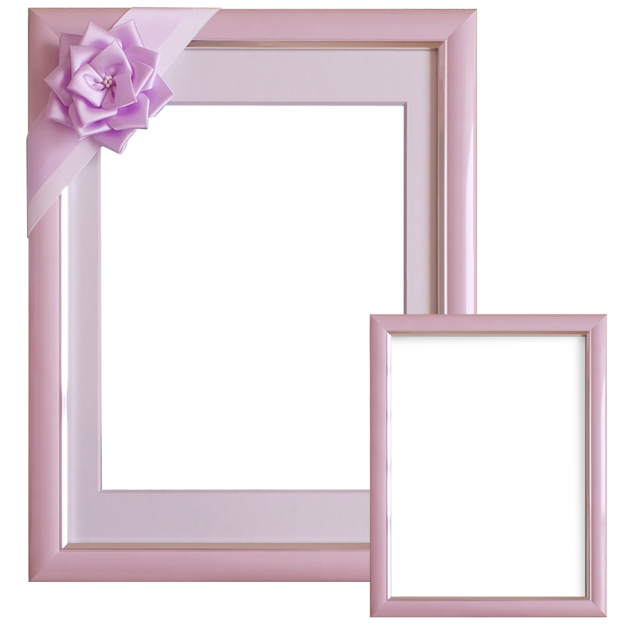あわい色味でパール調の華やかな額。写真のピンクの他にシックなグレーもあります。四切とキャビネサイズの2枚セット