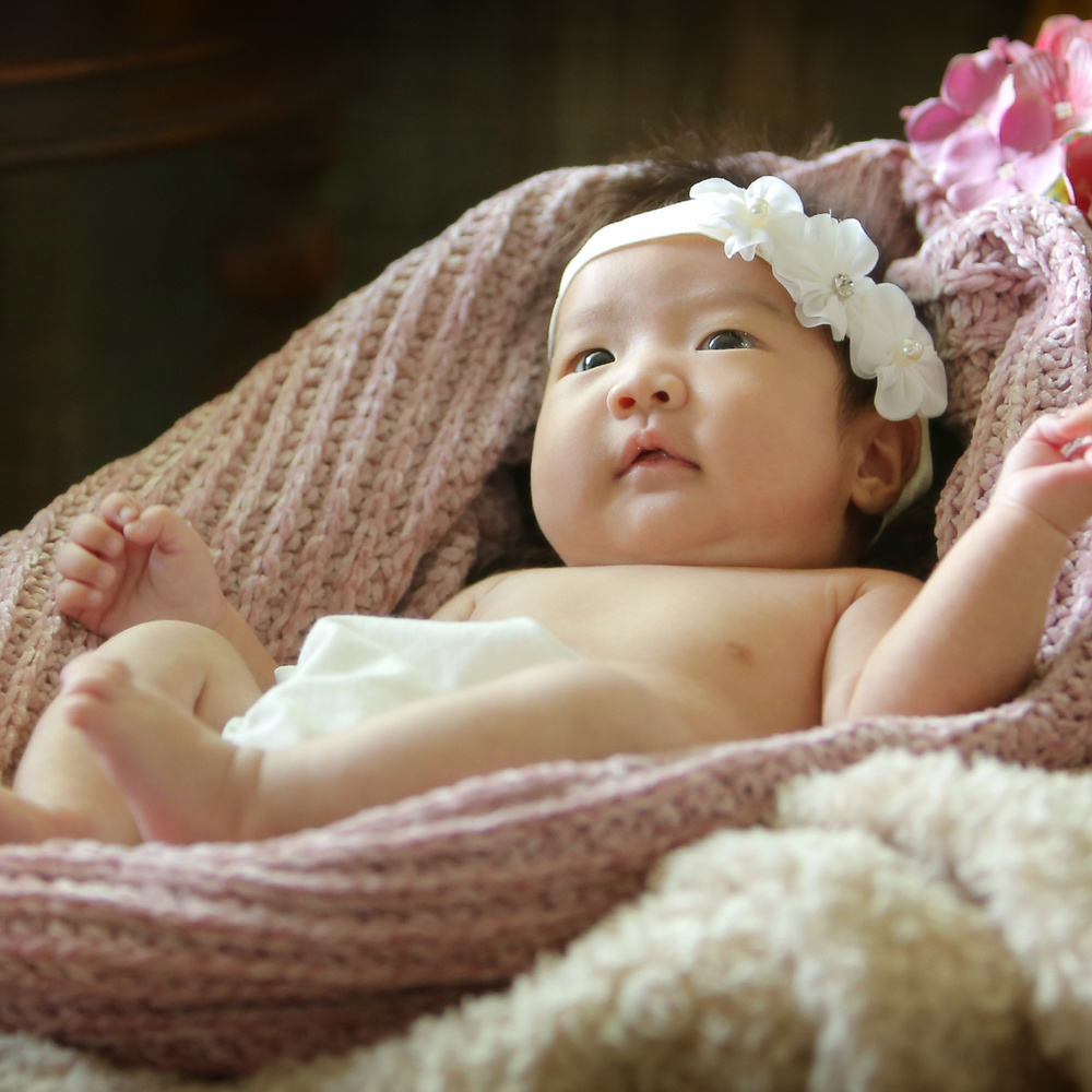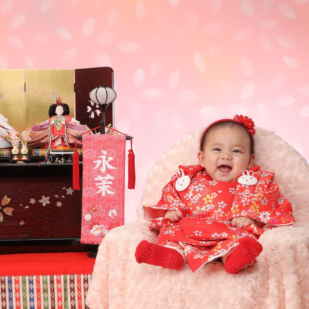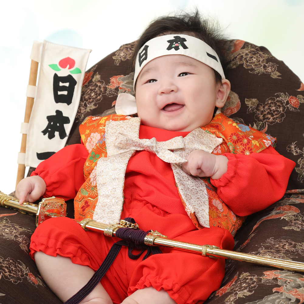 生まれてすぐのニューボーンフォトや初宮参り、100日記念にお食い初め、初節句のお祝いや、6ヶ月を祝うハーフバースデイなど赤ちゃんの撮影は時期を逃さないでね。お初着のほかにもいろんな撮影衣装があるよ。なにを着るかな?