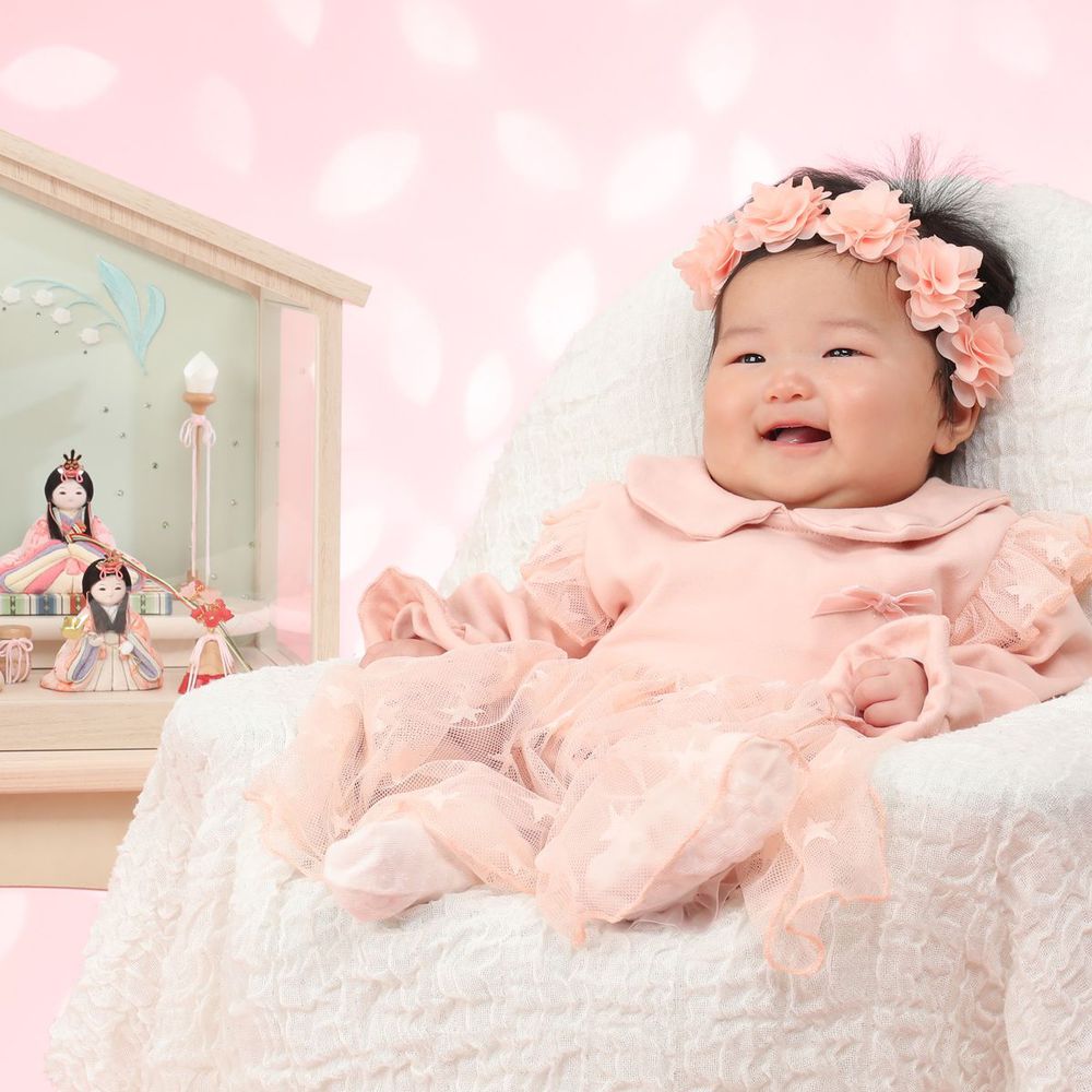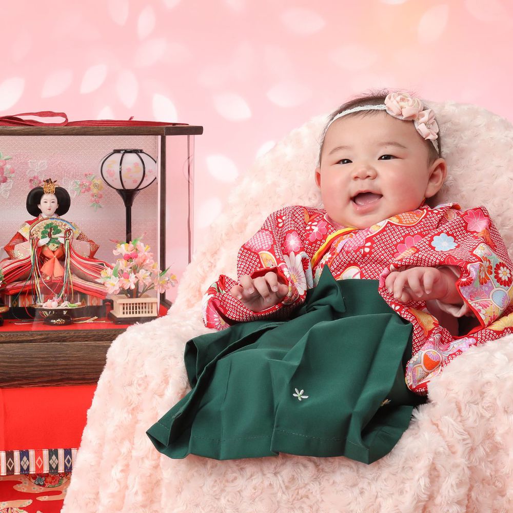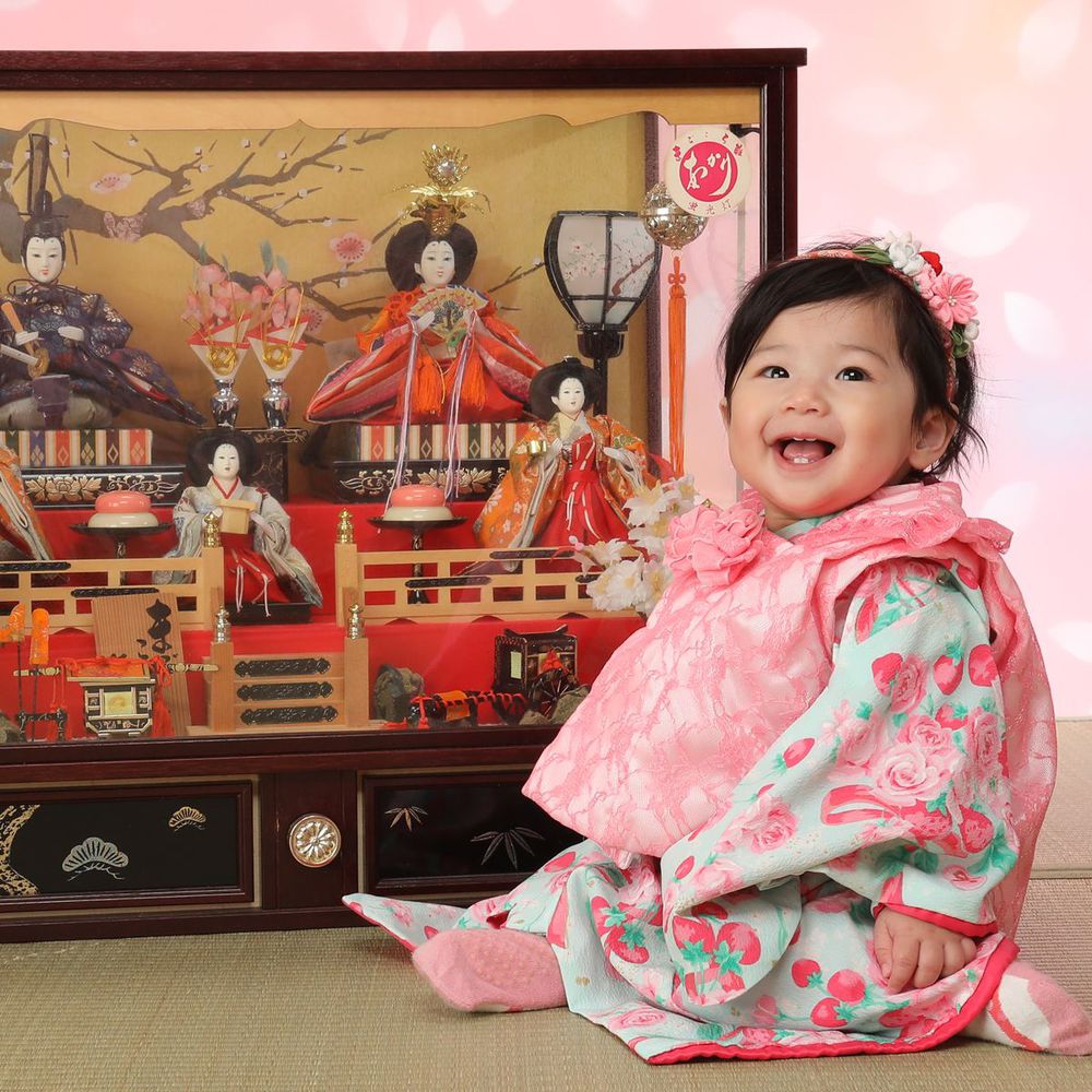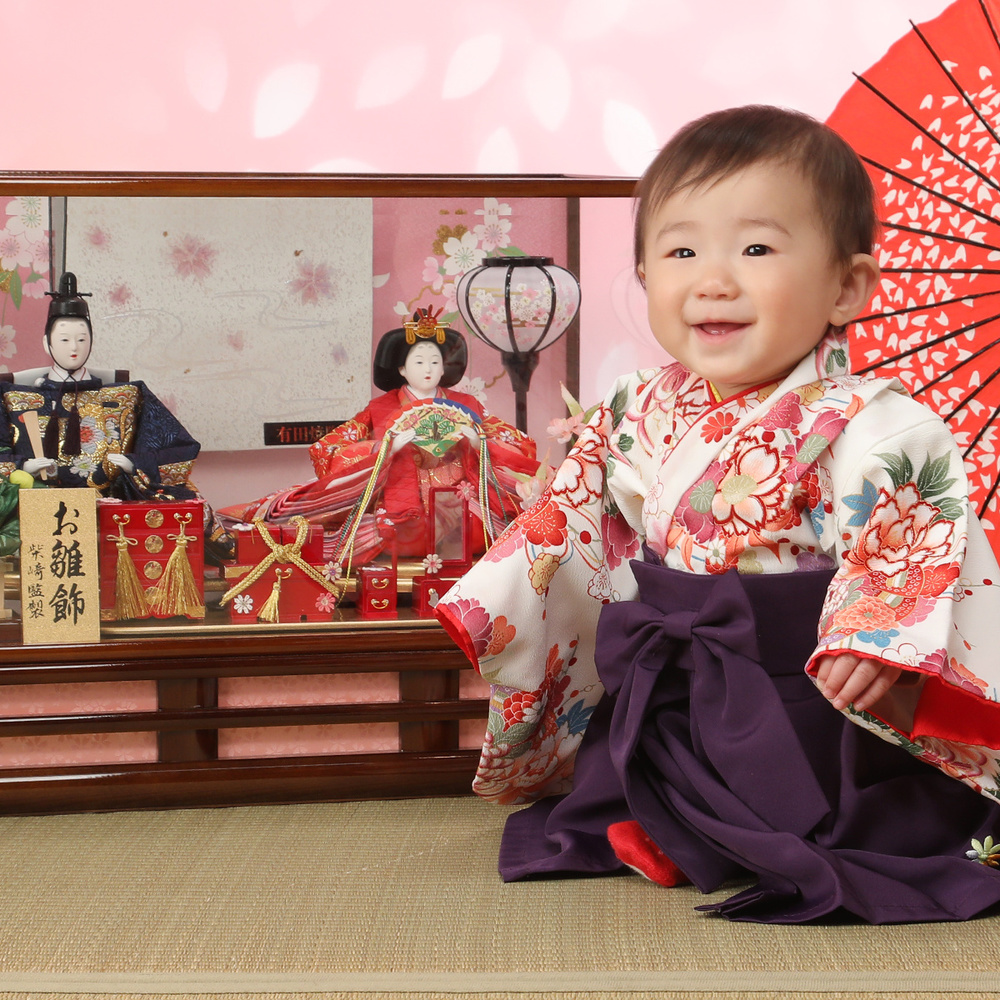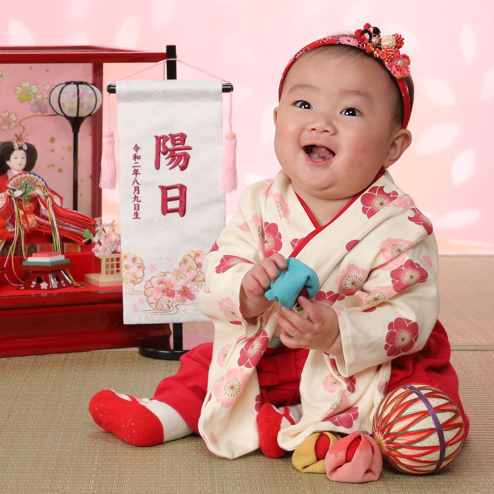 生まれてはじめての3月3日のひな祭りは特に「初節句」としてお祝いをします。その初めてのひな祭りの記念を写してあげてください。自分のおひなさんを持ってきてもらったら一緒に写したりできるのでよかったら持ってきてね。